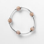Una pulsera delicada y sofisticada que combina la pureza de la plata 925 con cuentas de cristal tipo Murano en tono coral claro, con matices marmolados que hacen que cada pieza sea única.