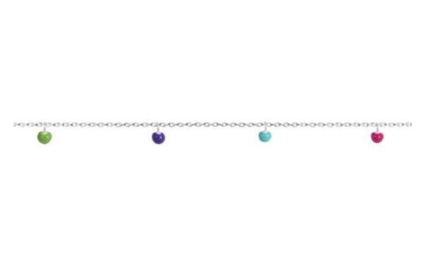 Una tobillera fresca y colorida elaborada en plata 925, decorada con pequeñas bolas esmaltadas de 4 mm que aportan un toque alegre y distintivo.